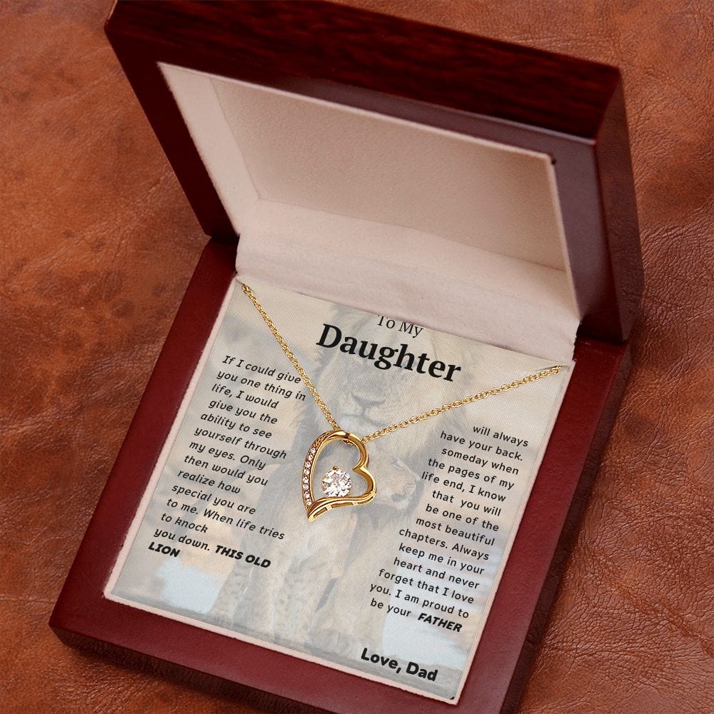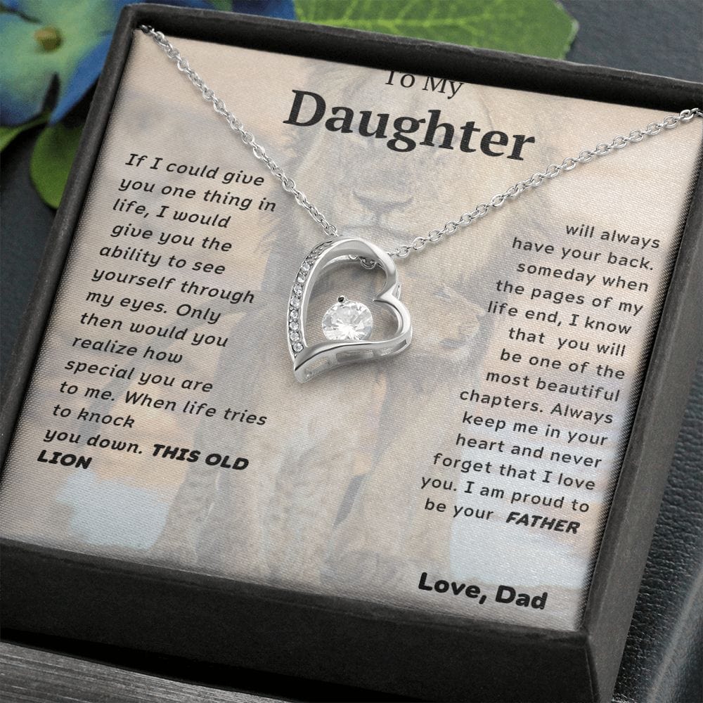 ¡El deslumbrante collar Forever Love seguramente hará que su corazón se derrita! Este collar presenta un impresionante cristal CZ de 6,5 mm rodeado por un colgante de corazón pulido adornado con cristales más pequeños para agregar brillo y brillo extra. Bellamente elaborado con un acabado en oro blanco o oro amarillo, asegúrese de darle un regalo clásico que pueda disfrutar todos los días.