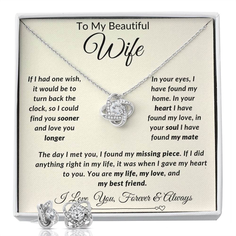 ¡Sorprende a tu ser querido con este magnífico juego de aretes y collar Love Knot!