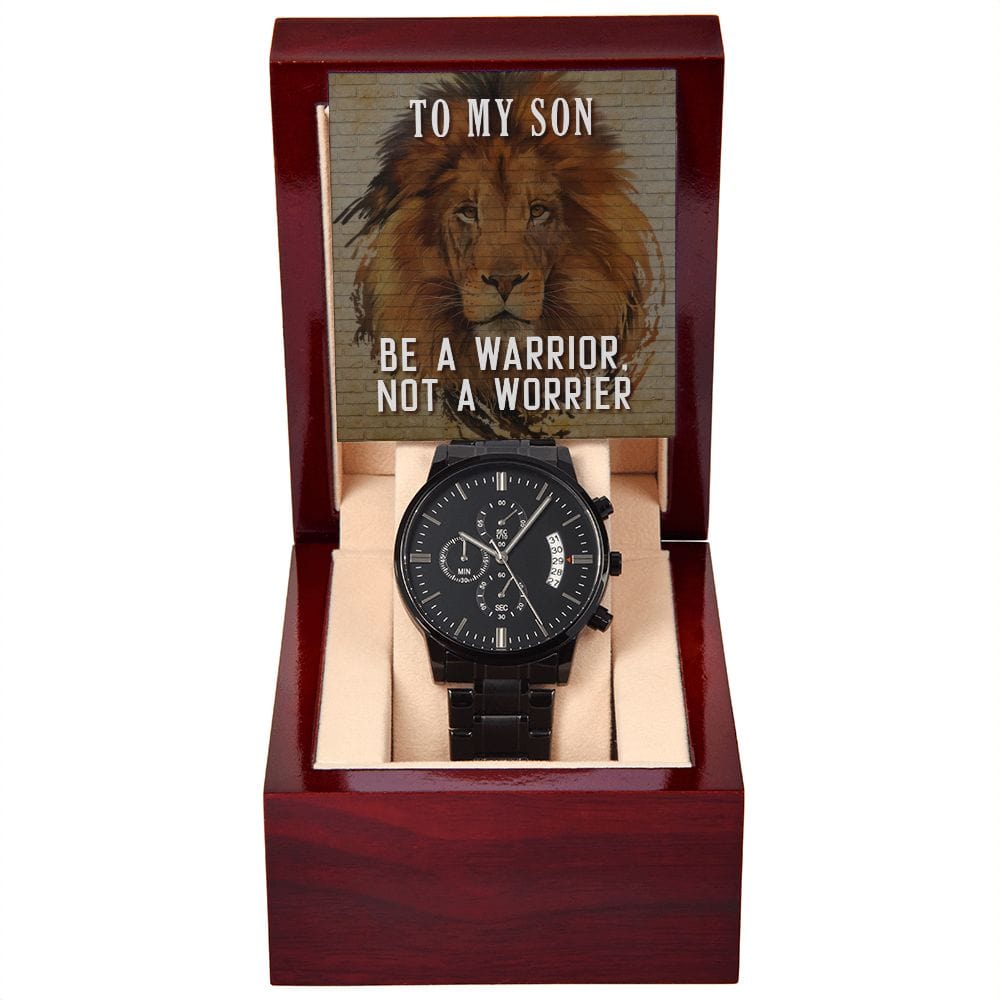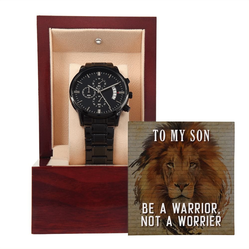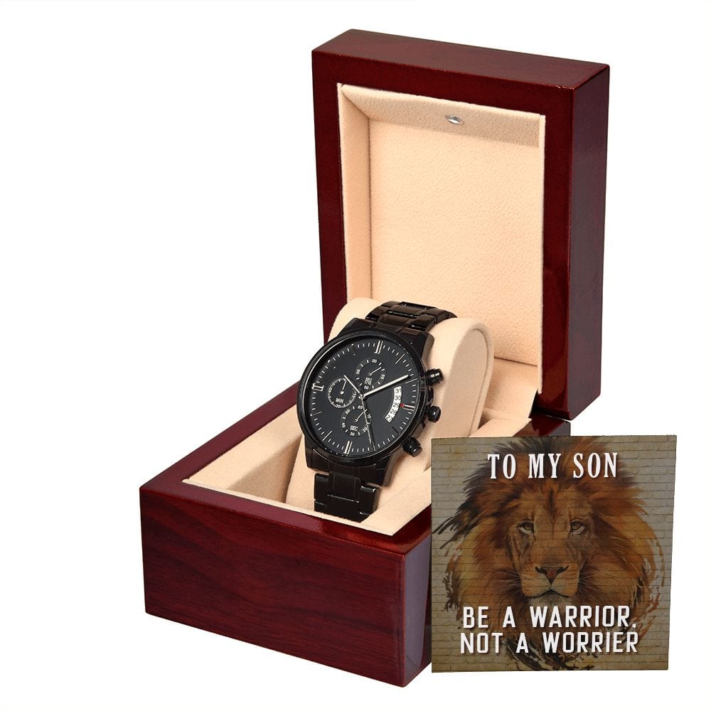 Ser un guerrero, no un angustiado. Reloj Cronógrafo Negro Con Caja De Caoba