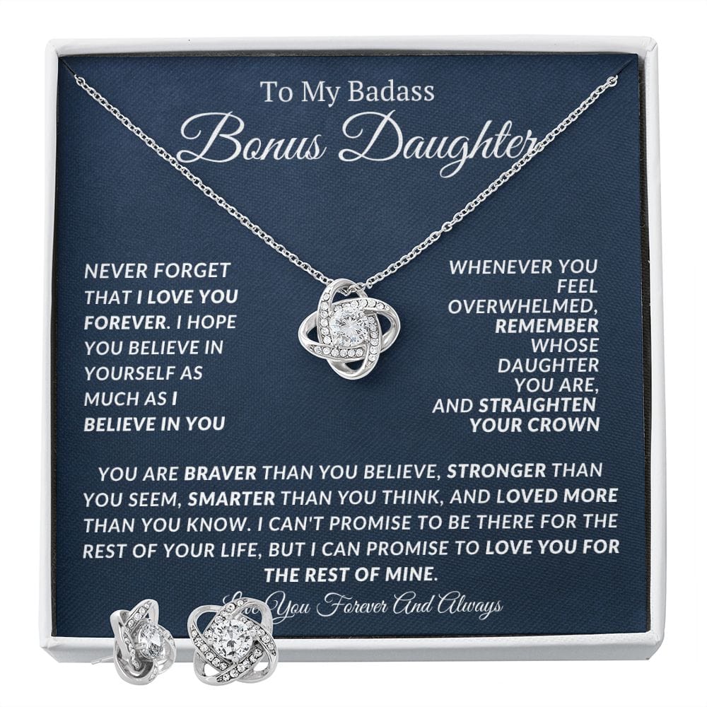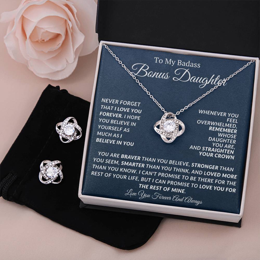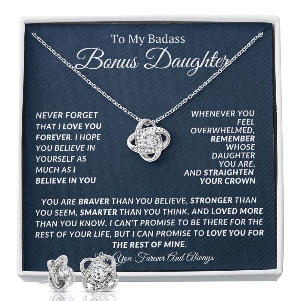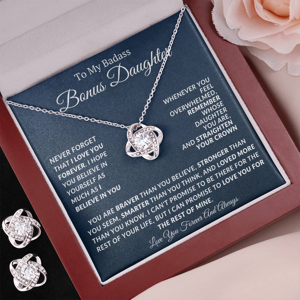 Conjunto de aretes y collar con nudo de amor para hija adicional