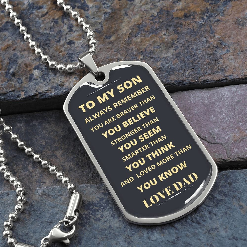 PLACA PARA PERRO CON CADENA DE BOLAS MILITAR A MI HIJO
