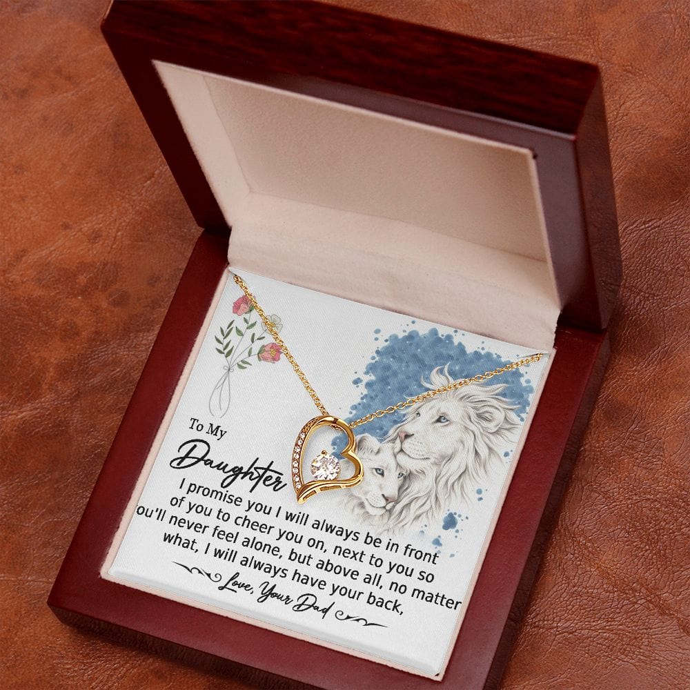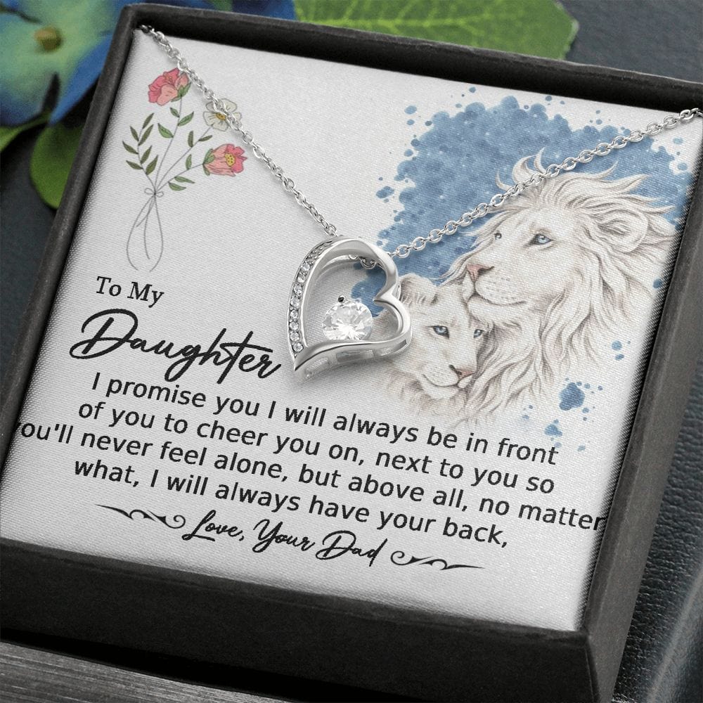 ¡El deslumbrante collar Forever Love seguramente hará que su corazón se derrita! Este collar presenta un impresionante cristal CZ de 6,5 mm rodeado por un colgante de corazón pulido adornado con cristales más pequeños para agregar brillo y brillo adicionales. Bellamente elaborado con acabado en oro blanco u oro amarillo, asegúrese de darle un regalo clásico que pueda disfrutar todos los días.