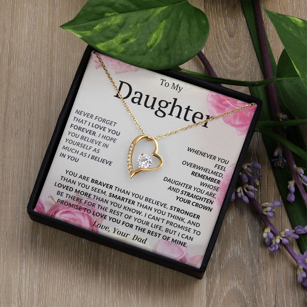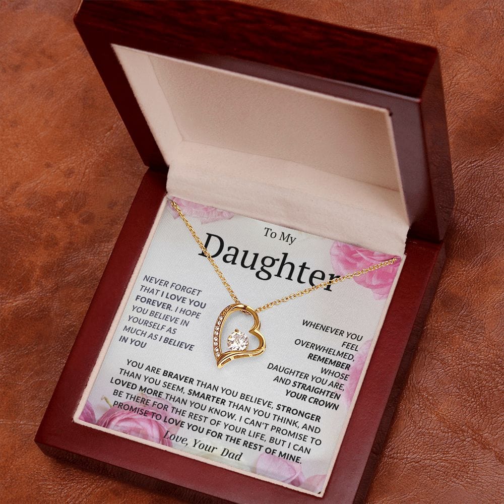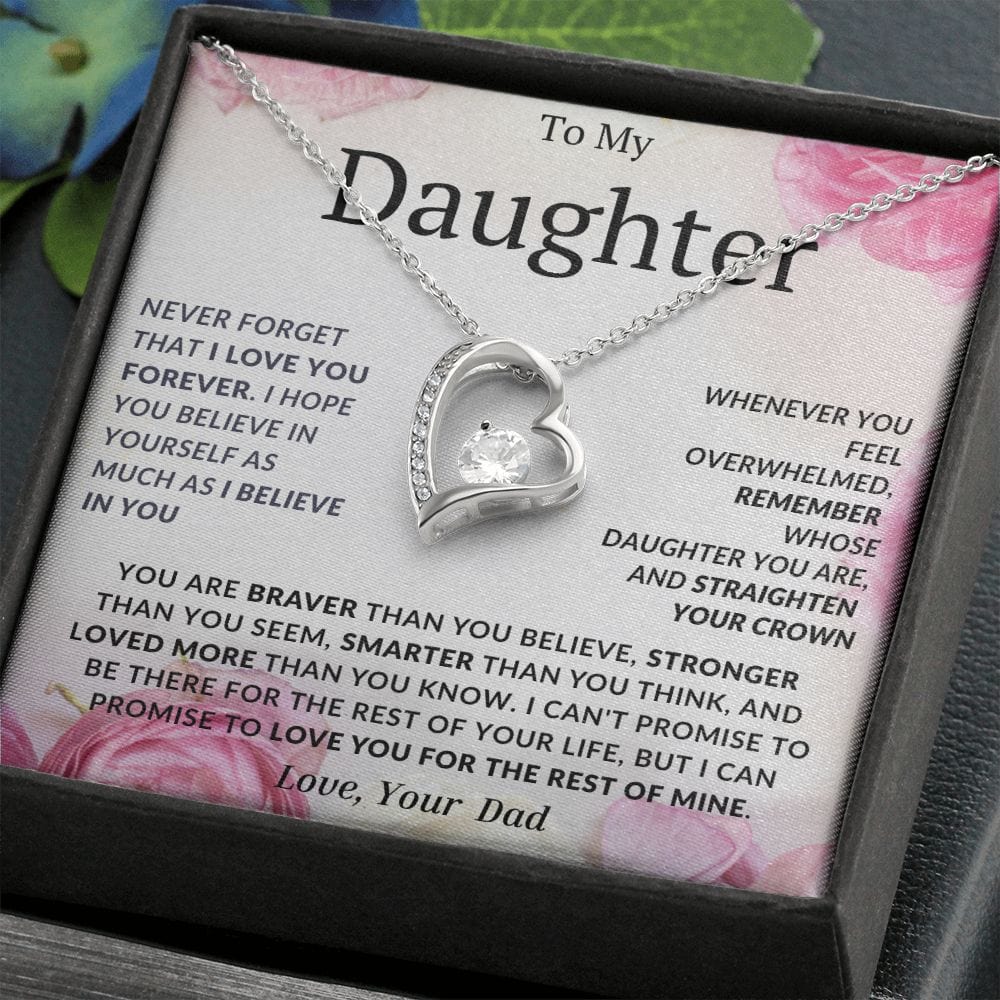 ¡El deslumbrante collar Forever Love seguramente hará que su corazón se derrita! Este collar presenta un impresionante cristal CZ de 6,5 mm rodeado por un colgante de corazón pulido adornado con cristales más pequeños para agregar brillo y brillo extra. Bellamente elaborado con un acabado en oro blanco o oro amarillo, asegúrese de darle un regalo clásico que pueda disfrutar todos los días.