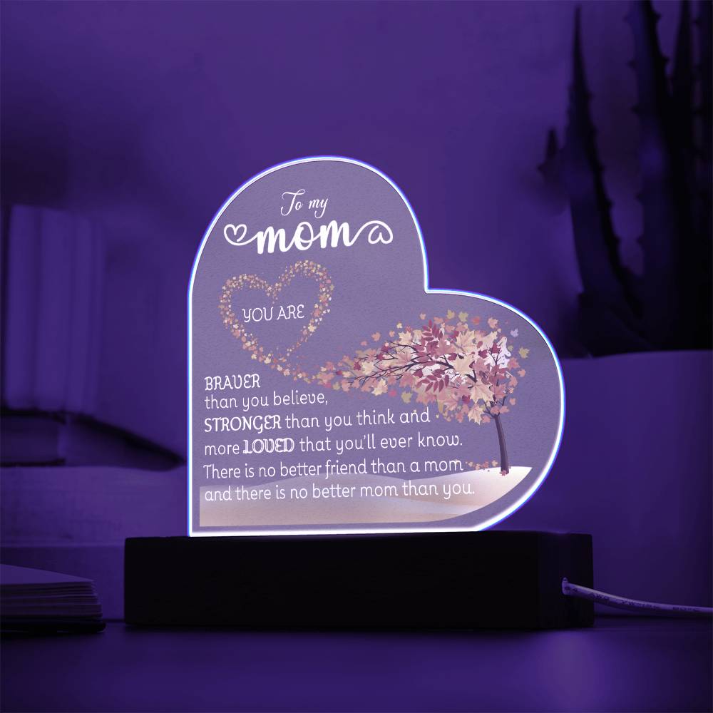 You are BRAVER than you believe, STRONGER than you think, and more LOVED than you ever know. There is no better friend than a Mom and there is no better mom than you.
