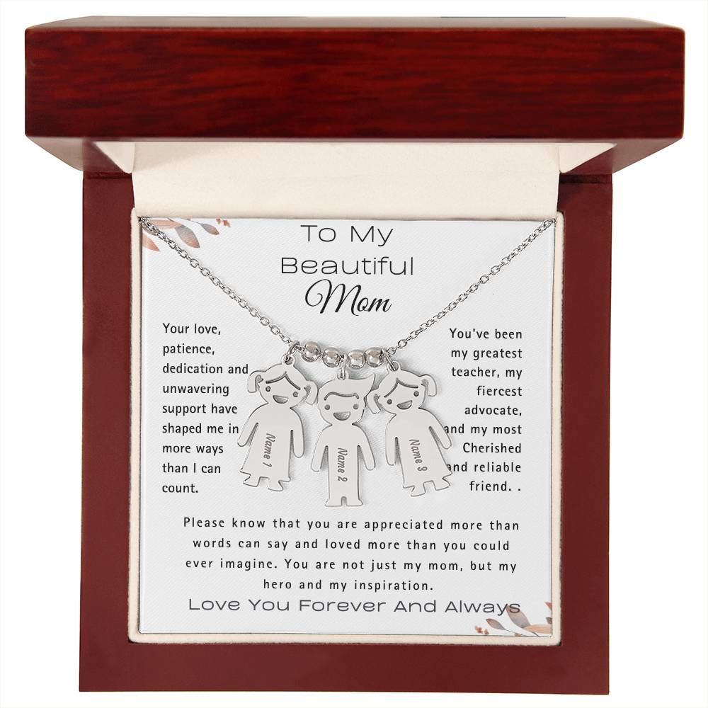 A mi hermosa mamá-Collar con dije personalizado para niños