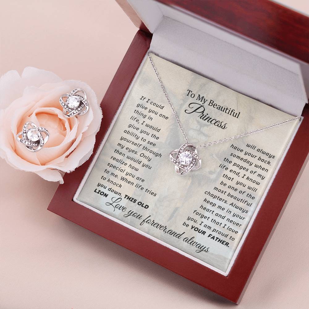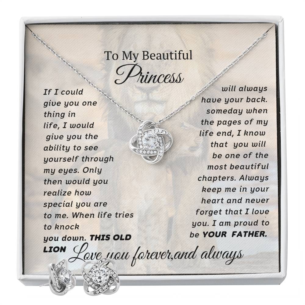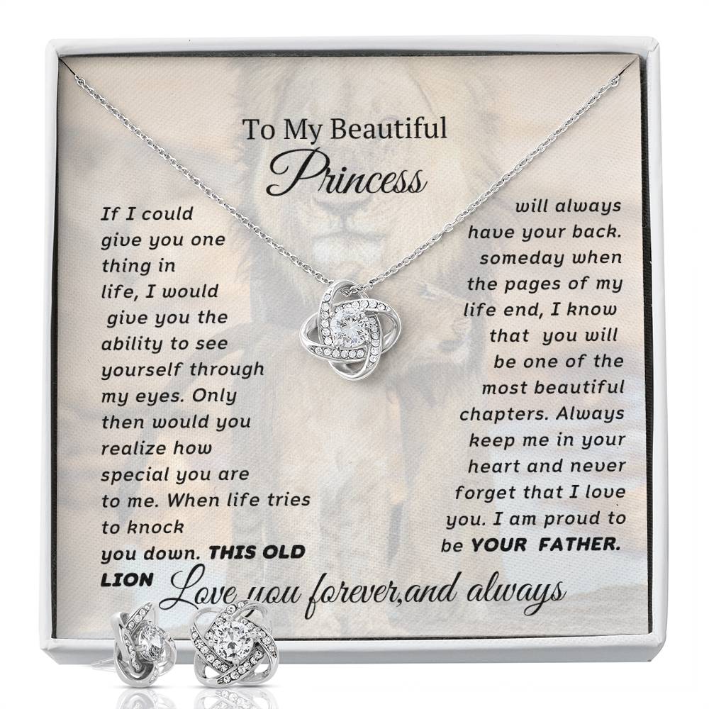 To My Beautiful Princess Love Knot Necklace With Free Earrings Set
