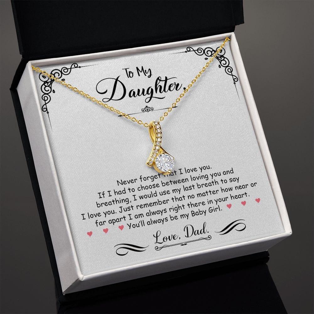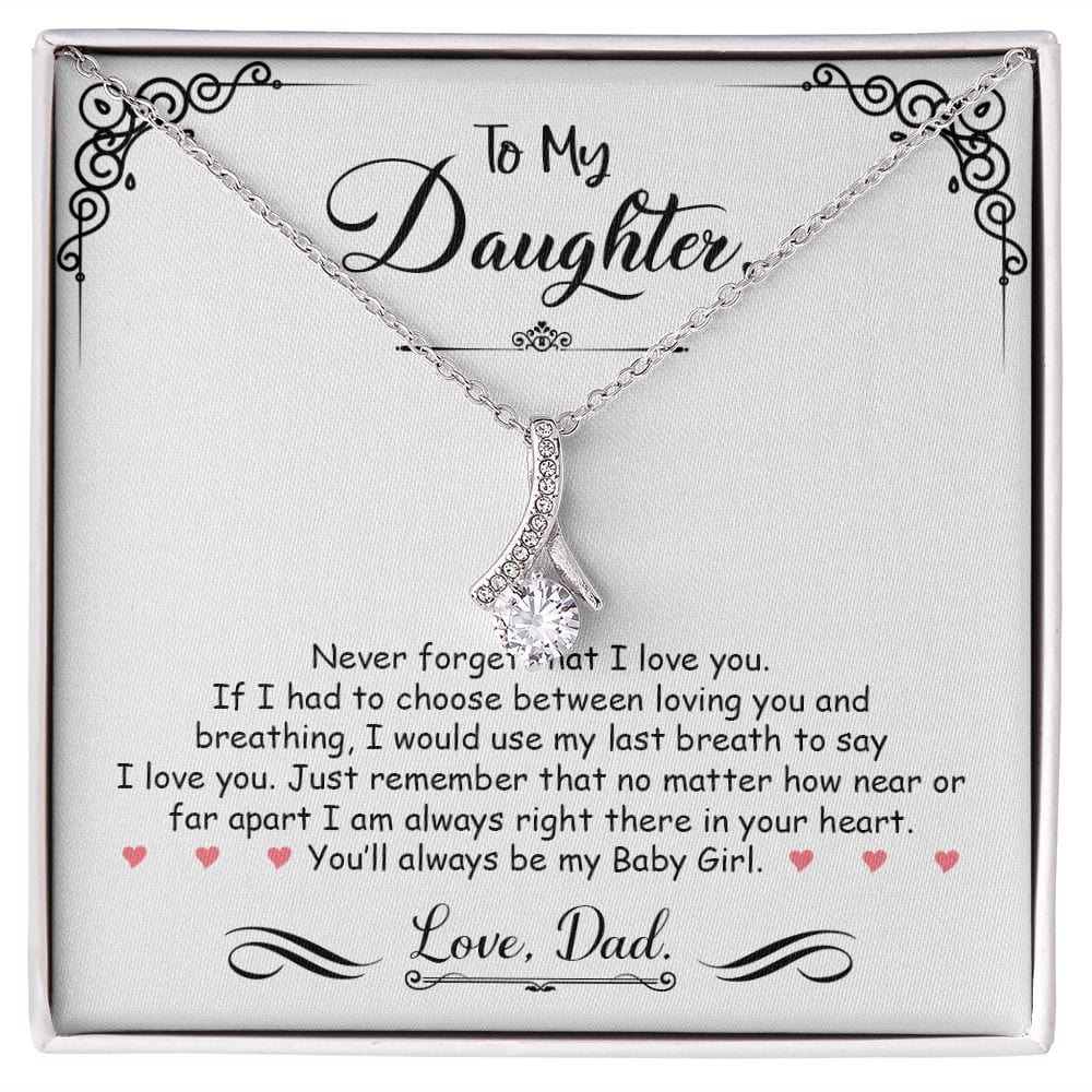 ¡Imagínese su reacción cuando abra este impresionante regalo! El collar Alluring Beauty presenta un pequeño colgante en forma de cinta que seguramente deslumbrará a esa persona especial. Ya sea un cumpleaños o un aniversario, asegúrese de regalarle un regalo que le encantará durante muchos años.