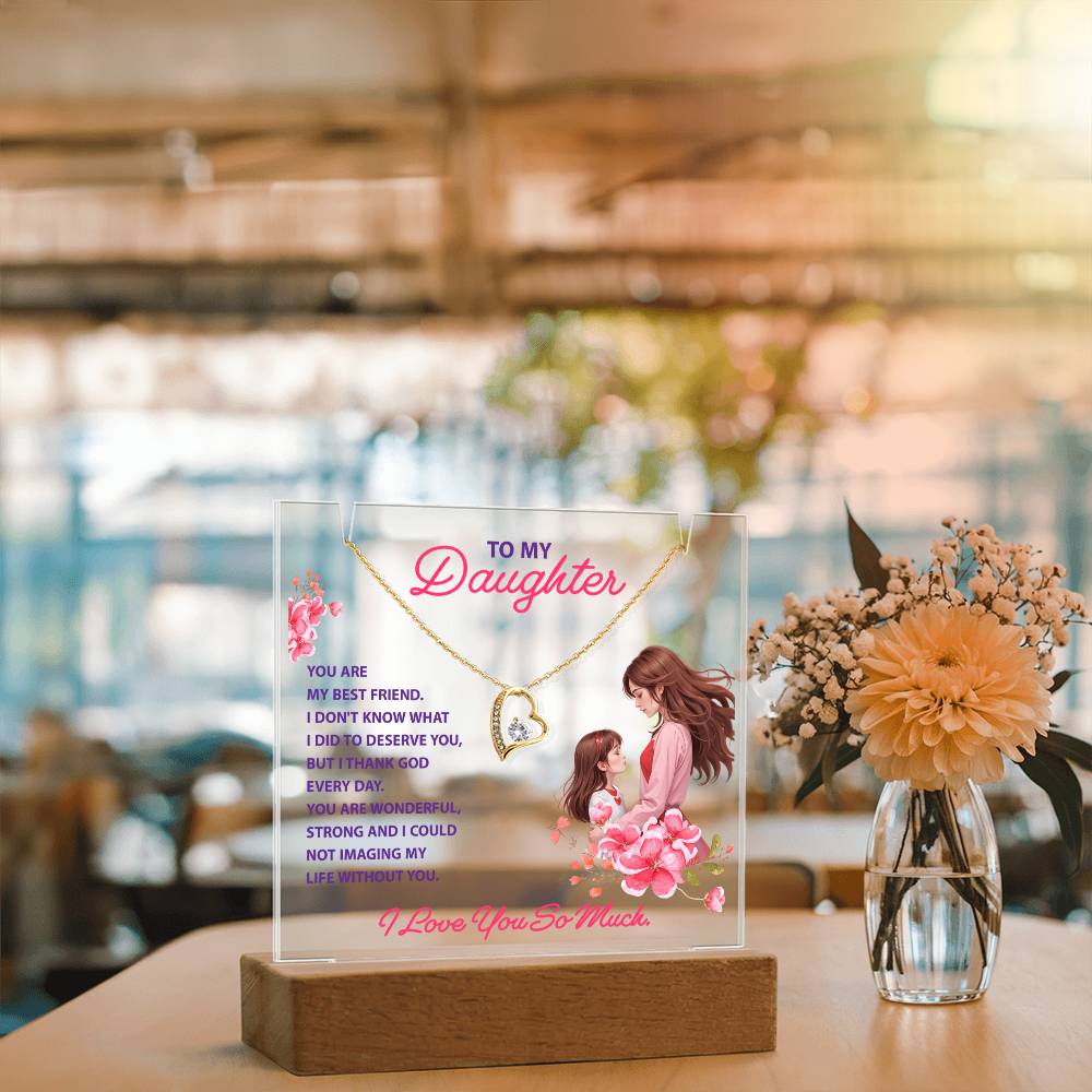 To My Daughter Keepsake LED Acrylic & Endless Love Necklace Combo.