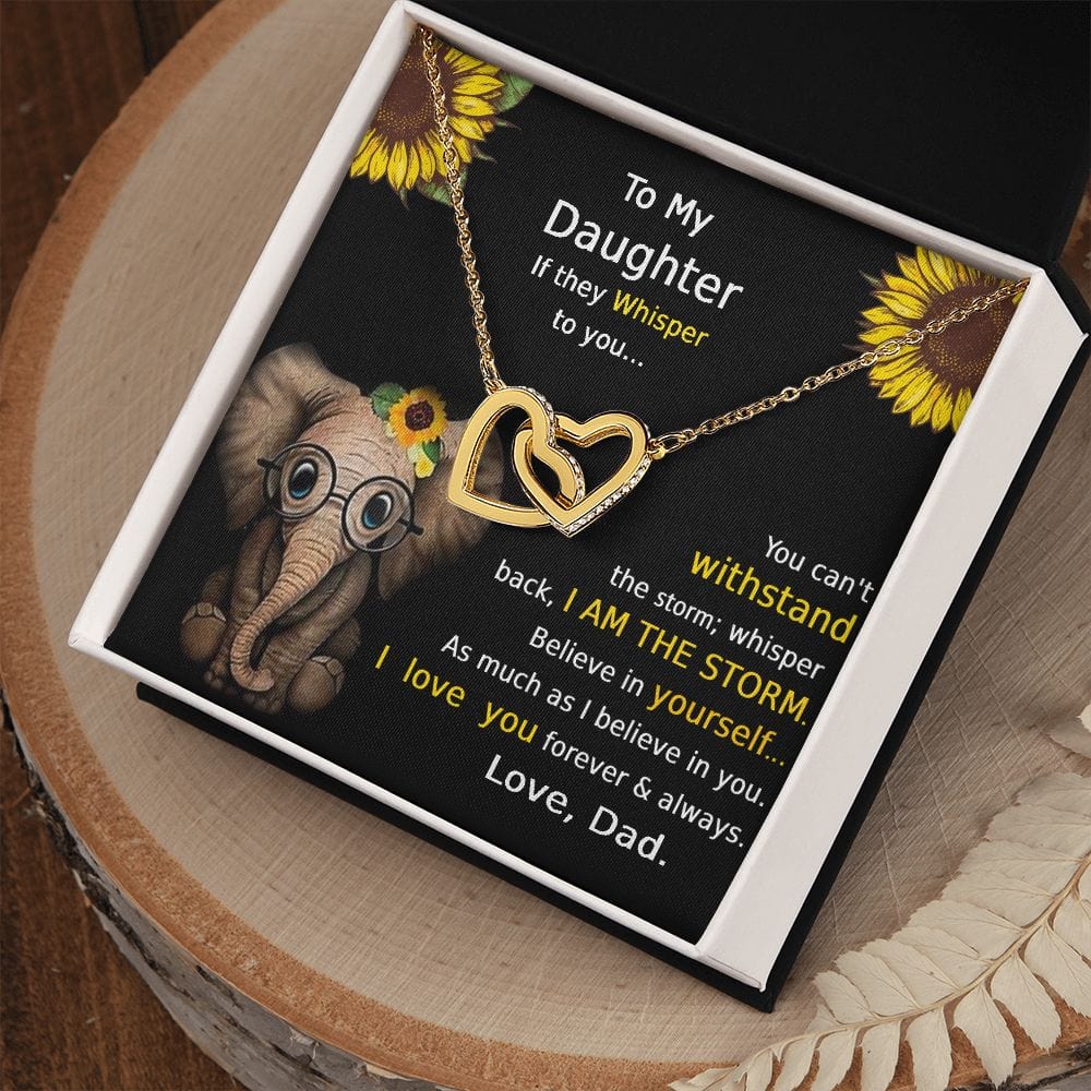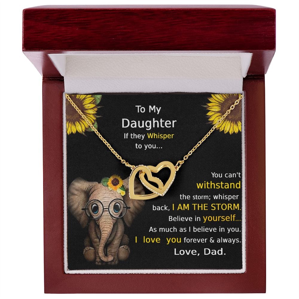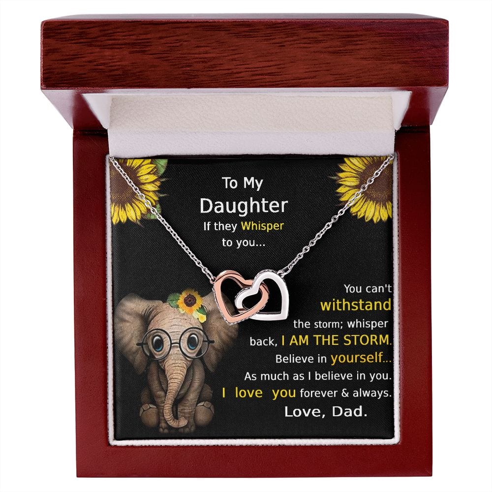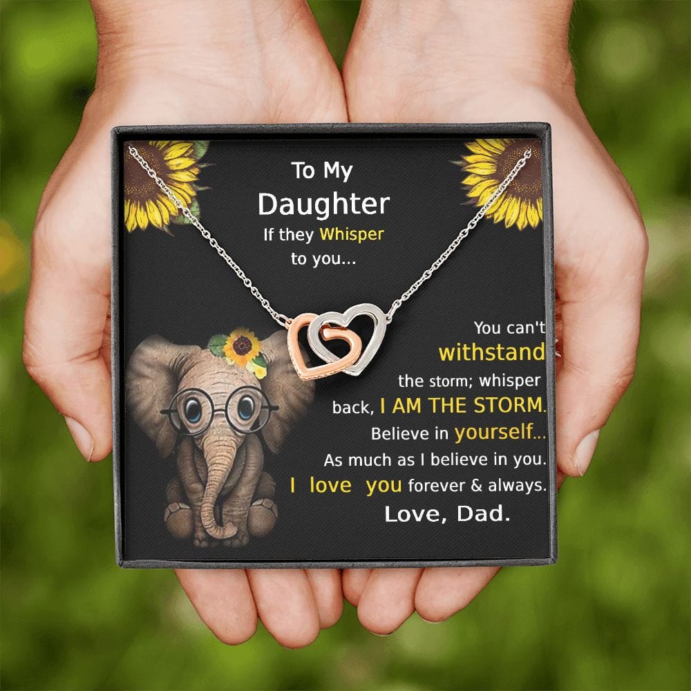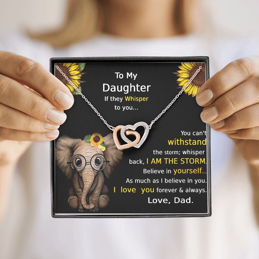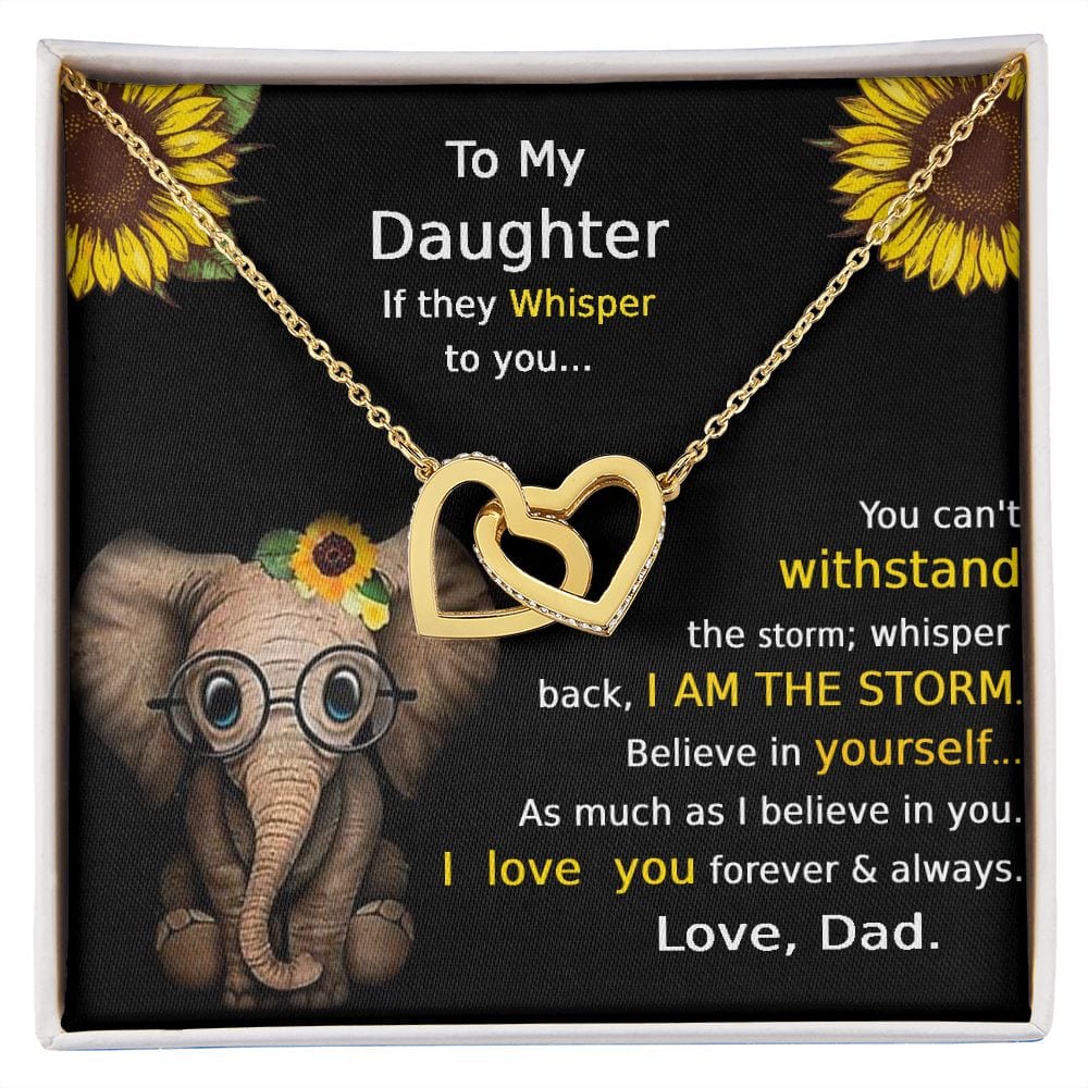 "Si te susurran... No puedes soportar la tormenta. Susurra que soy LA TORMENTA. Cree en ti tanto como yo creo en ti. Te amo. Por siempre y para siempre. Con amor, papá"