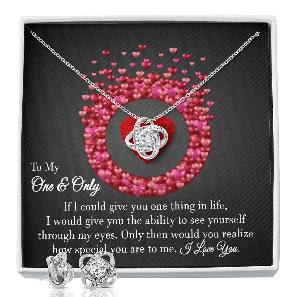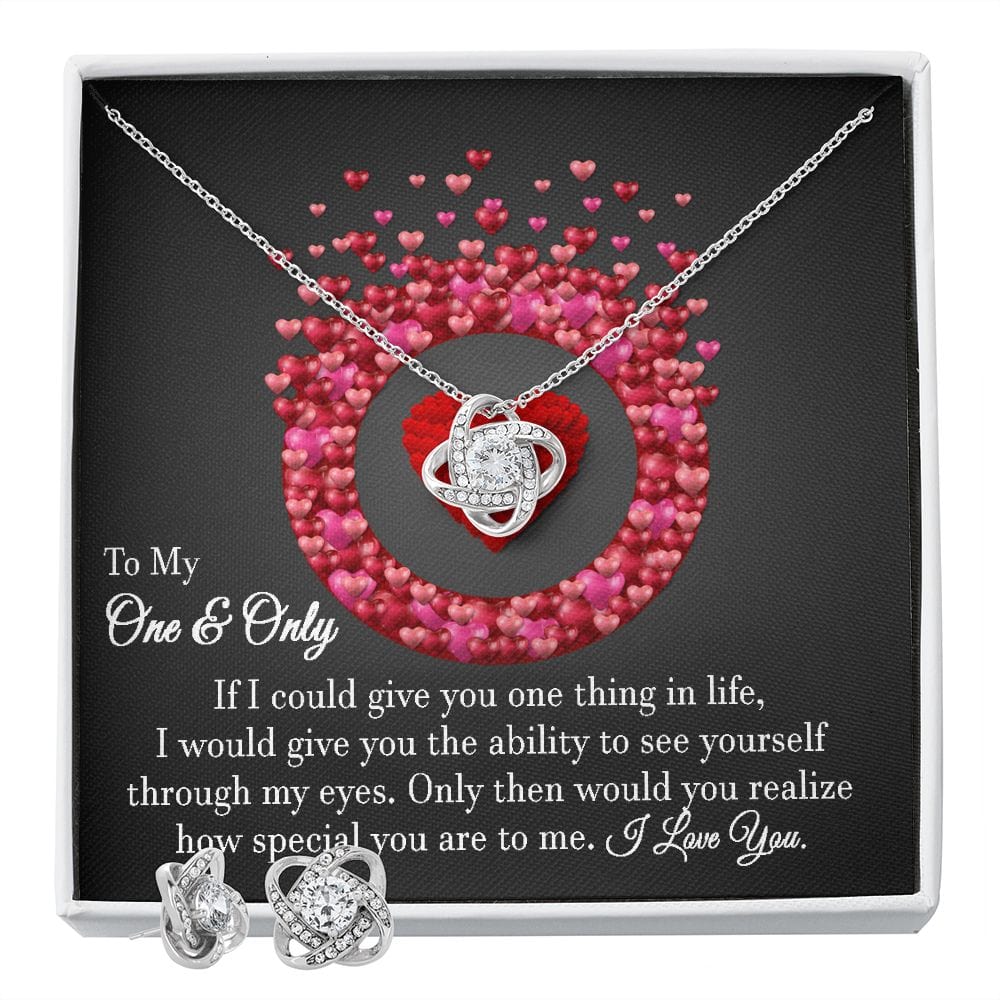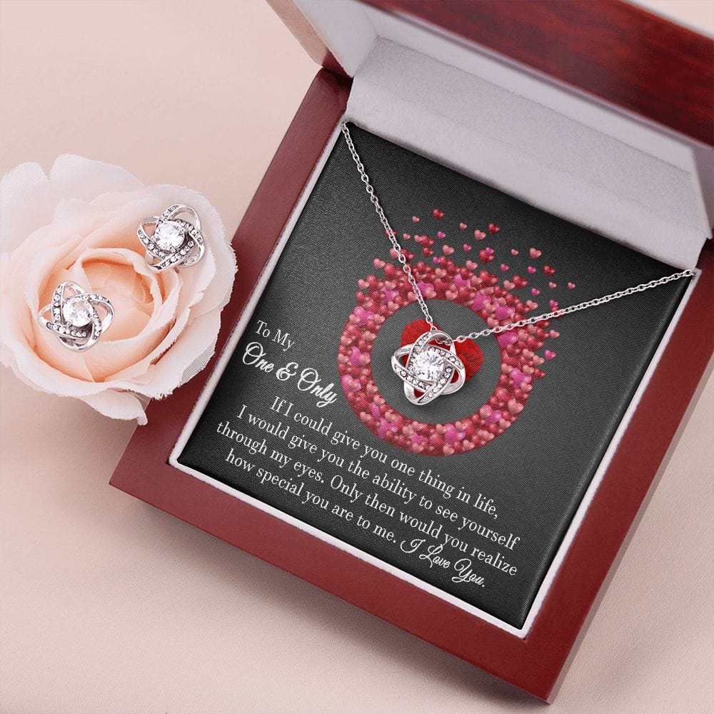 ¡Sorprende a tu ser querido con este magnífico juego de aretes y collar Love Knot!