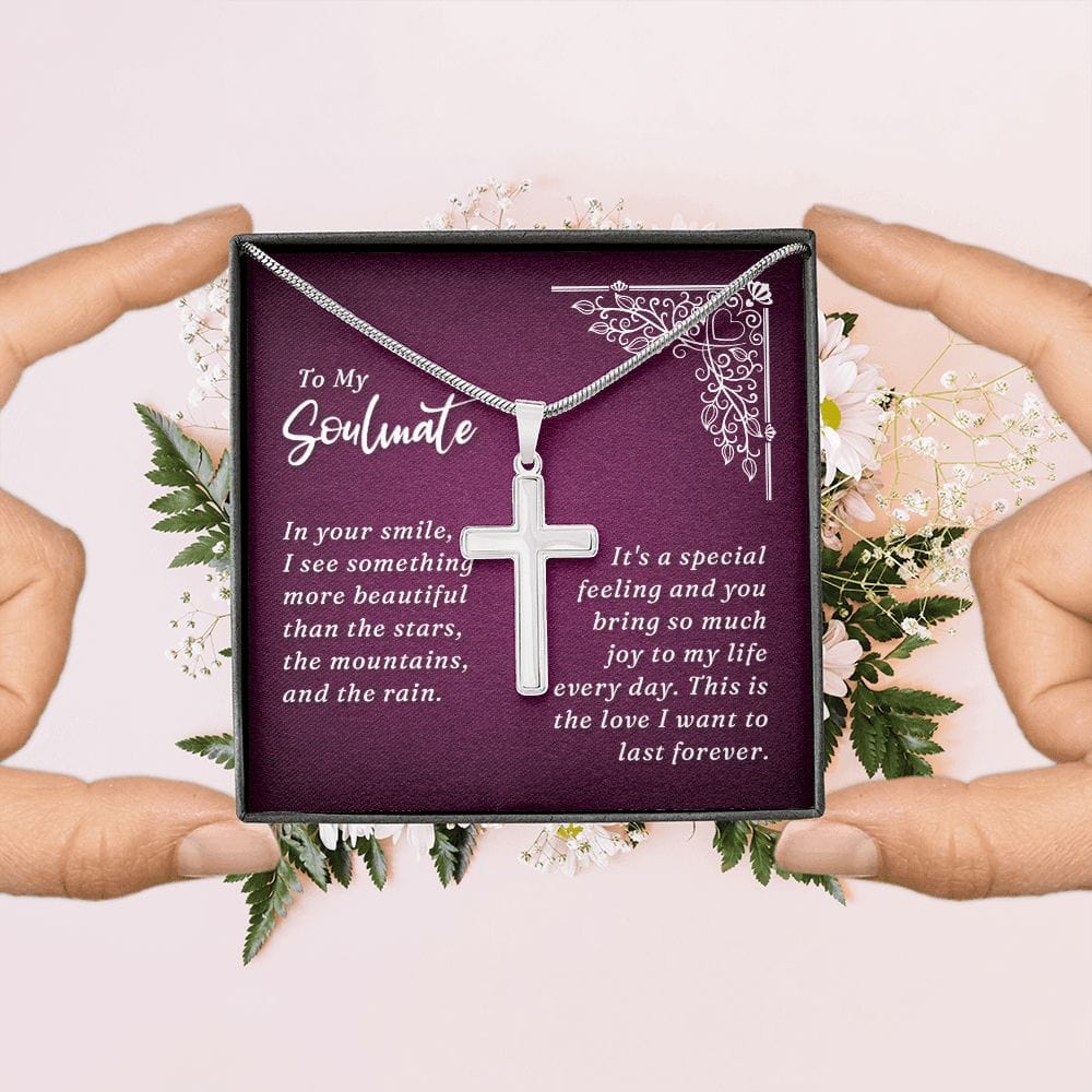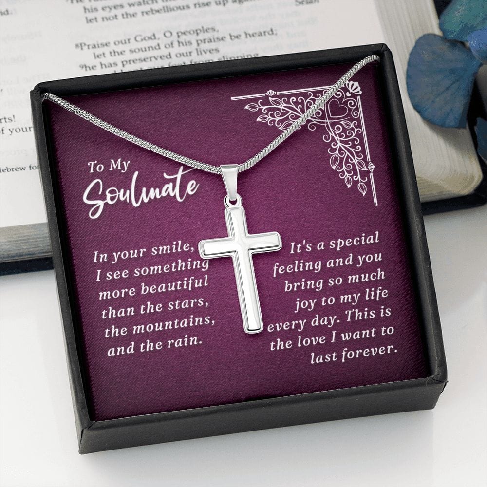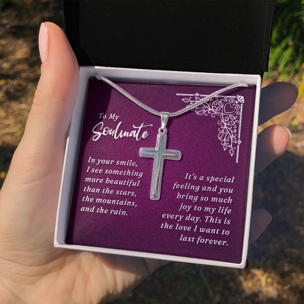 A mi alma gemela: en tu sonrisa - Collar cruzado de acero inoxidable con cadena de serpiente