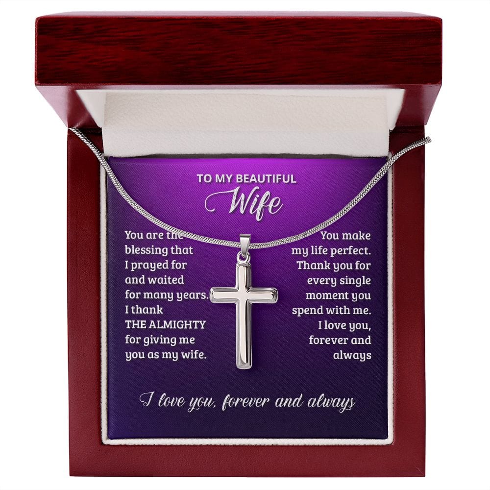 Para mi hermosa esposa, eres la bendición, collar cruzado de acero inoxidable con cadena de serpiente